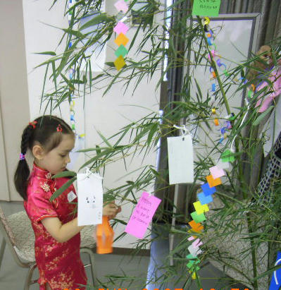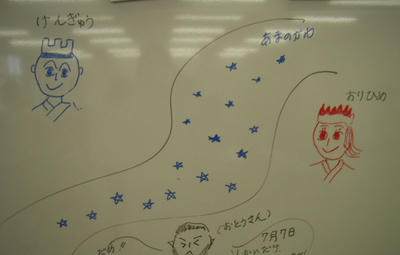 日本の七夕祭りをイラストで紹介し、七夕の由来を聞き楽しいサロンを