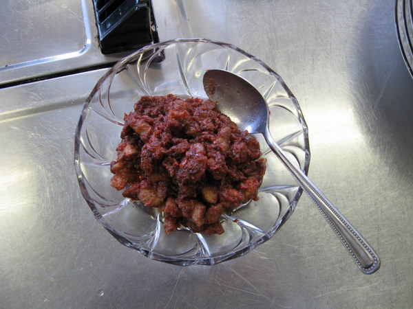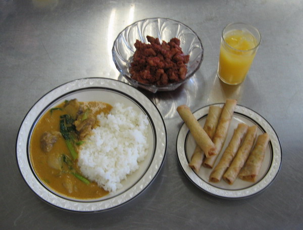 『豚肉とオキアミの付け合せ』そして甘いマンゴージュース、