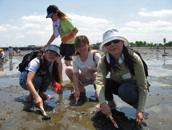 メンバーがちりじりになって砂をかき、あさりを探しだすともう一生懸命、