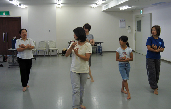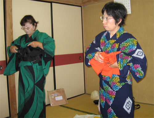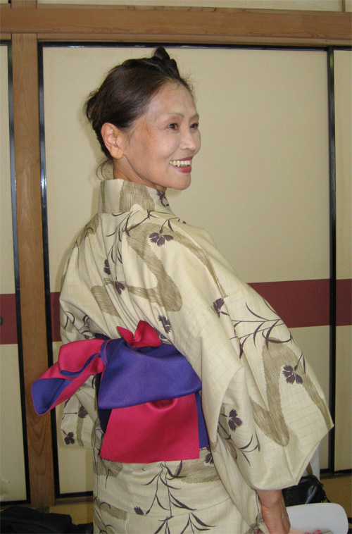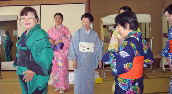 ゆかたの着装と半巾帯の結び方を酒井先生から習いました。