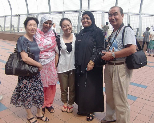 今回のバスハイクの参加者は9ヵ国42名(大人:31人、子供:11人)で、その内訳は中国:8名、フィリピン:4名、韓国:3名、タイ:2名、パキスタン:2名、ベトナム:1名、台湾:1名、ペルー:1名、NIA会員:9名、NIA月曜スタッフ:7名、NIAスタッフ名:2名、一般:2名でした。空港に向かう浅草あたりで、バスの車窓から見える建造中の東京スカイツリー