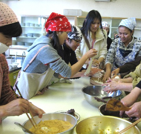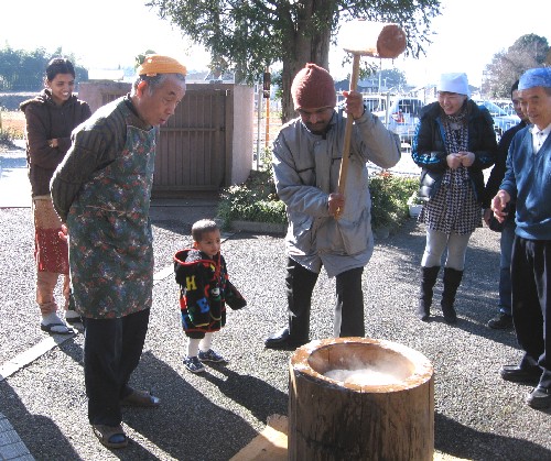 外国人と一緒に楽しいもちつき大会が開催されました。