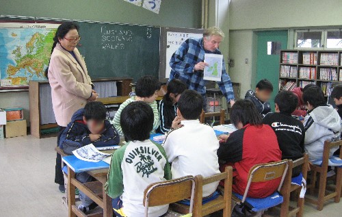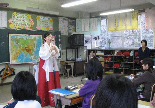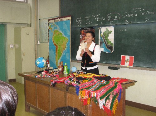 5年生(48名)を対象に、外国人講師4名(韓国、ペルー、英国、中国)を招き、