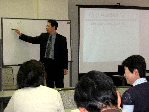 助詞「に」を例に、必要な場合、不要な場合を各々が例文を出しながら考えました。
