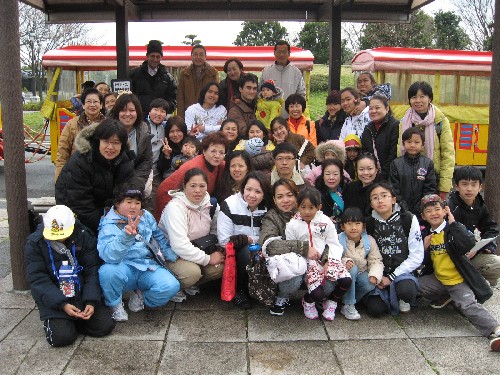 パークトレイン(後ろ)で公園内を一周した後、皆で記念写真を撮りました。